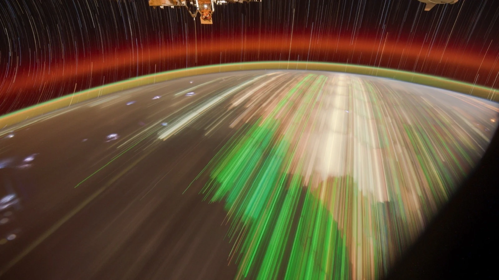 Астронавт Международной космической станции (МКС) Дон Петтит поделился поразительным снимком с длинной выдержкой, на котором запечатлены зеленые огни рыбацких лодок в Таиланде. На заднем плане также можно увидеть «звёедные полосы».