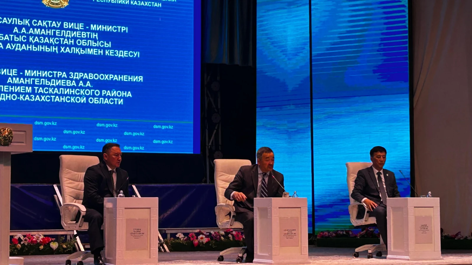 Вице-министрмен кездесуге келген Тасқала ауданының тұрғыны Жұмагелді Қыдыров сауалын жолдады. Аудан тұрғыны ДЦП (балалар церебалды параличі) сырқатымен ауыратын баласы үшін қажетті тегін берілетін дәрі-дәрмекті Ресейден сатып алатынын мәлімдеді. Бір жылдан бері емге шипа болатын «Баклосан» дәрісі берілмей келеді.