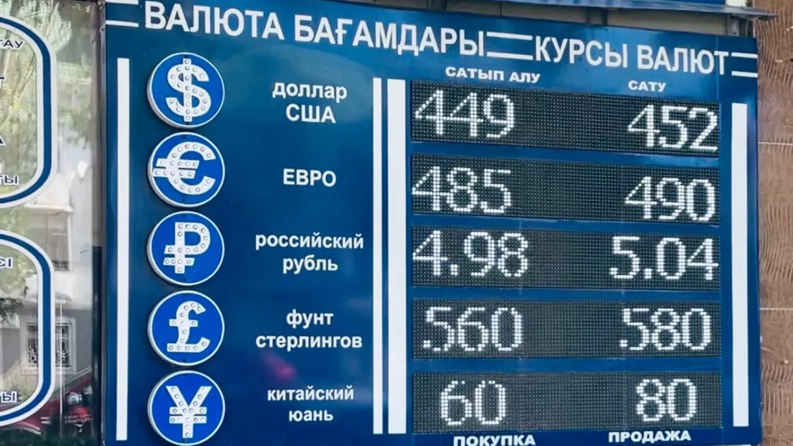 - рубль: покупка – 4,99-5,02 тенге, продажа – 5,05-5,07 тенге.