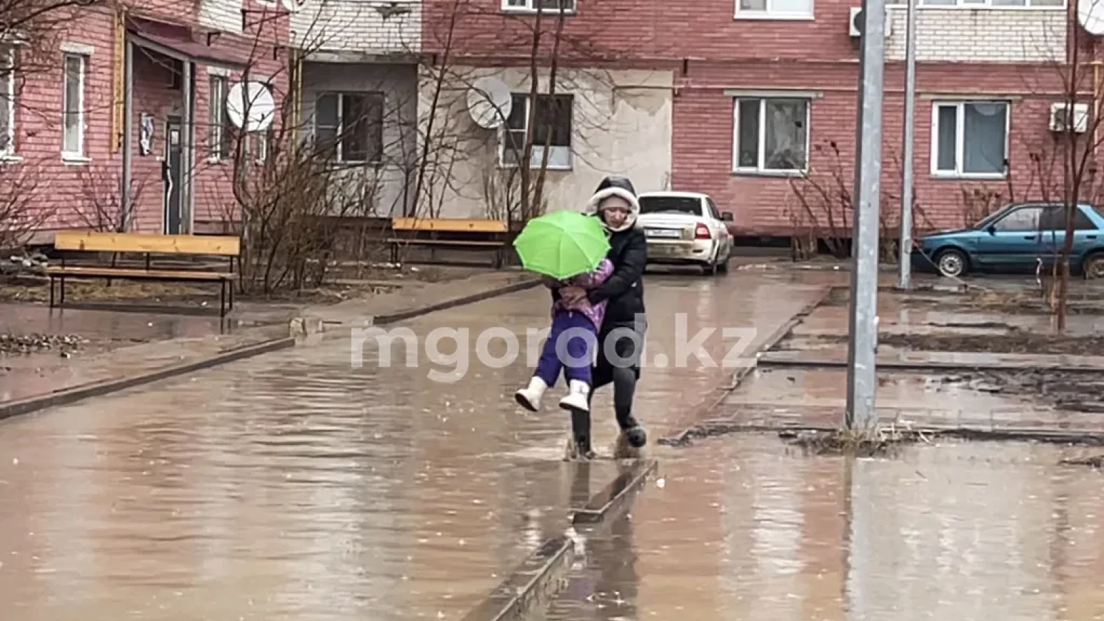В Уральске с четырех утра 26 марта льёт дождь. На дорогах и тротуарах образовались огромные лужи. Талые воды затопили дворы многоэтажных домов, что не подобраться к подъездам. Одним словом, Уральск, как и каждую весну, превратился в маленькую «Венецию».