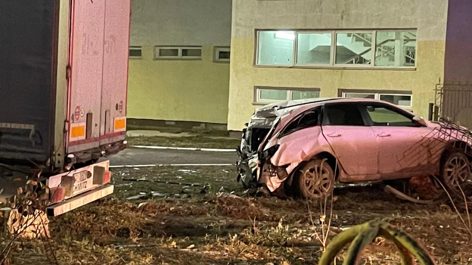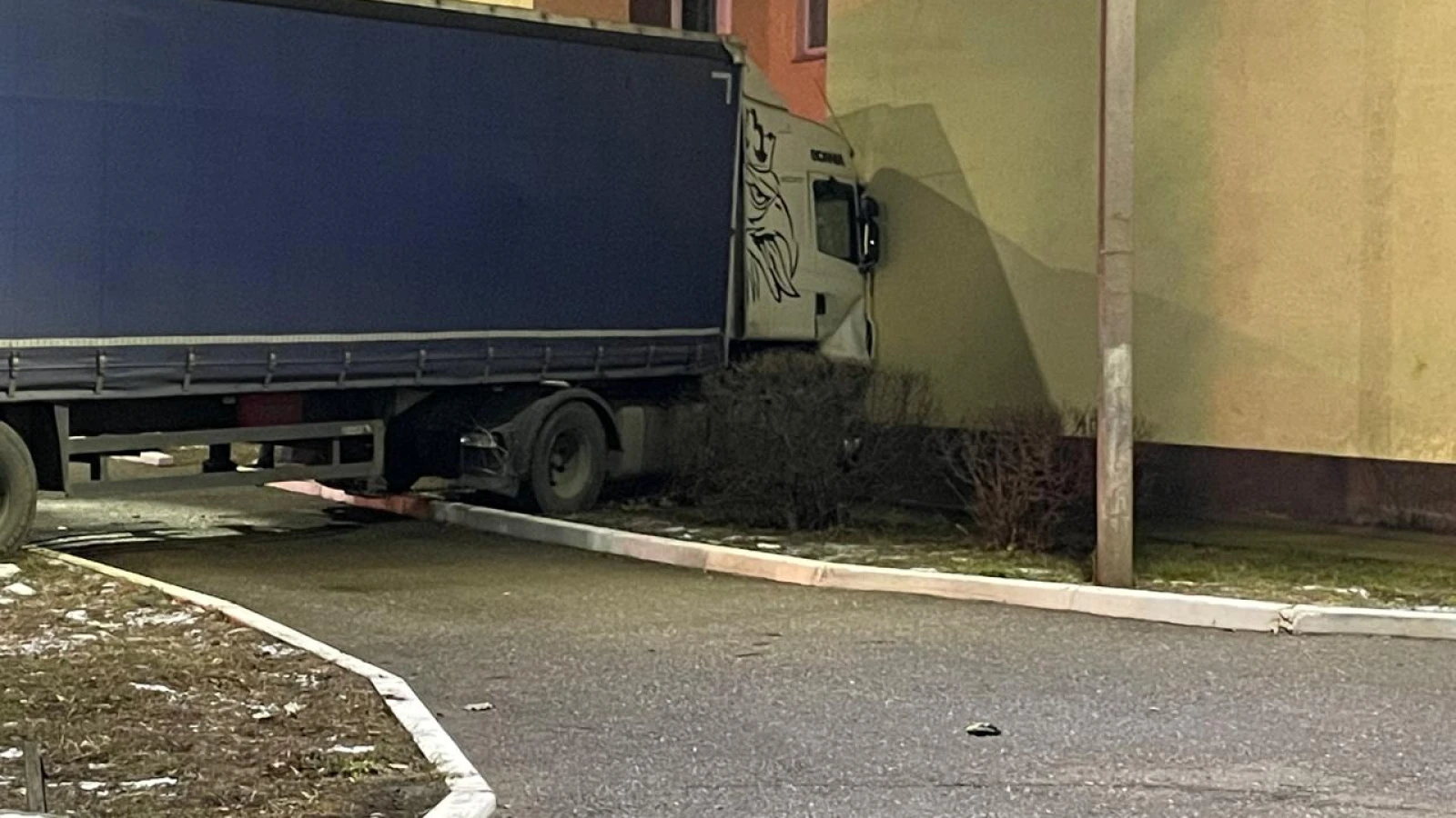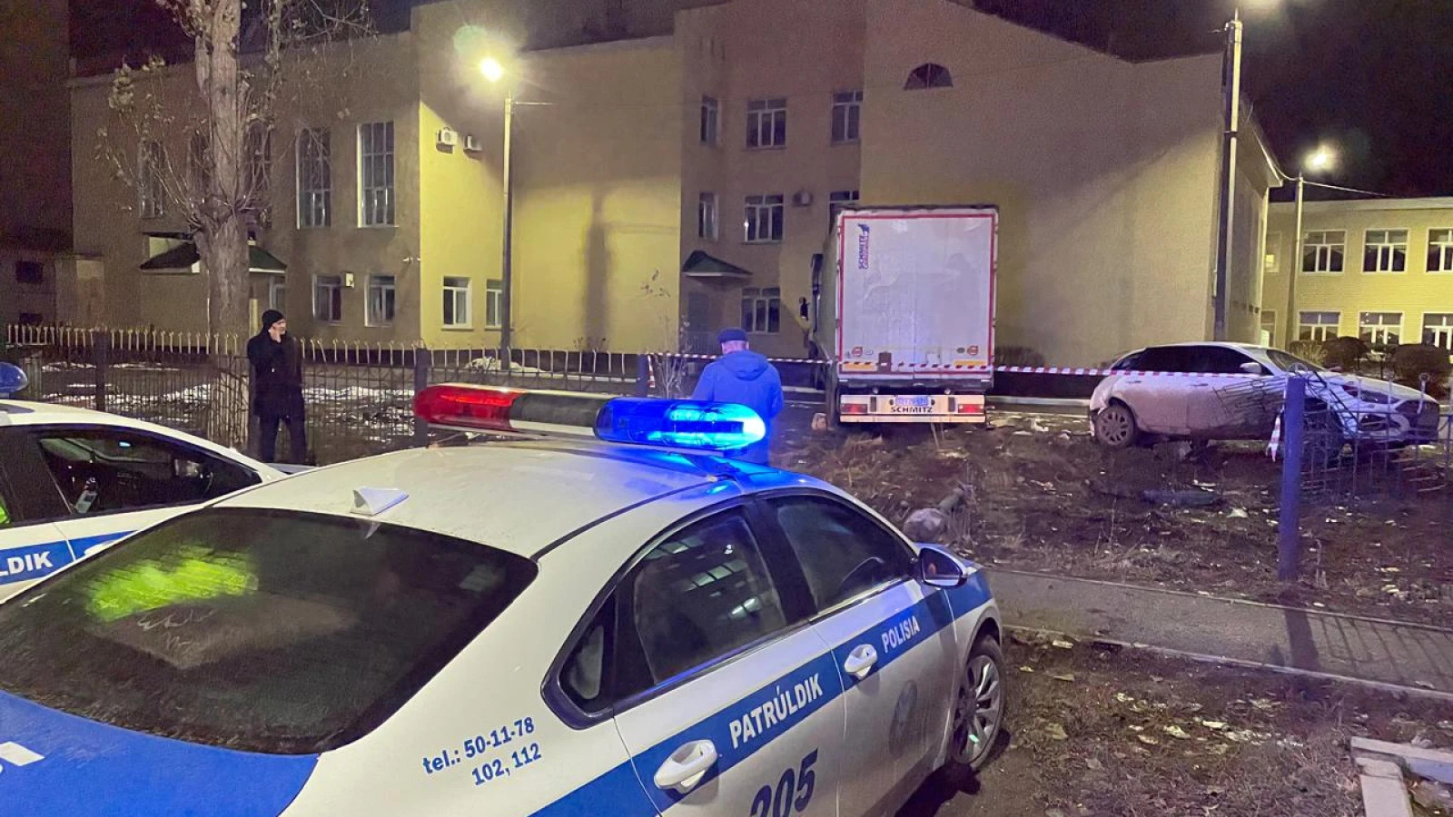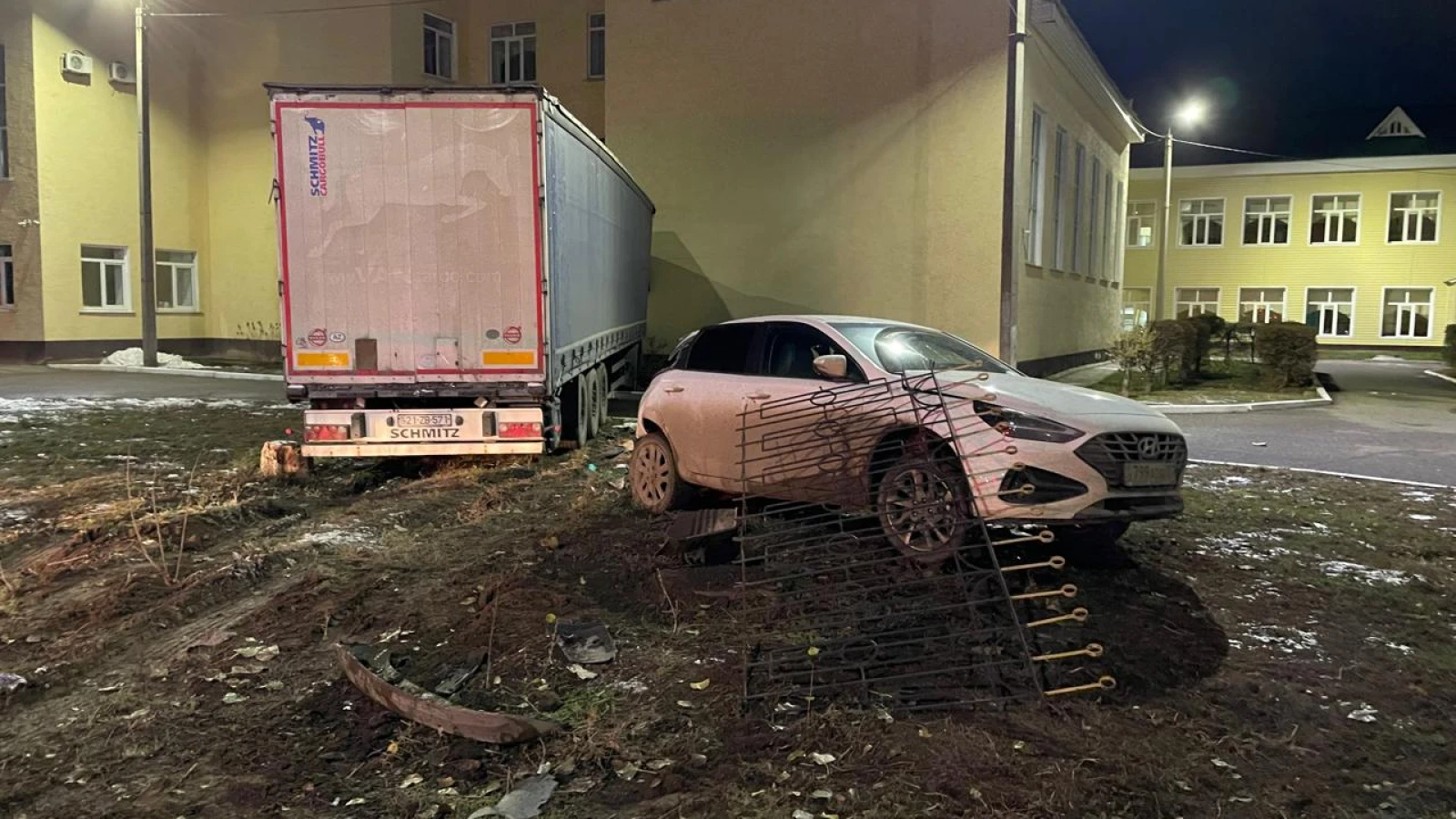 ДТП произошло 14 ноября примерно в 22:00. По словам очевидцев, водитель фуры ехал по улице Мендалиева и врезался в Hyundai. После чего большегруз вместе с легковушкой протаранили забор и далее фура врезалась в здание школы № 36.