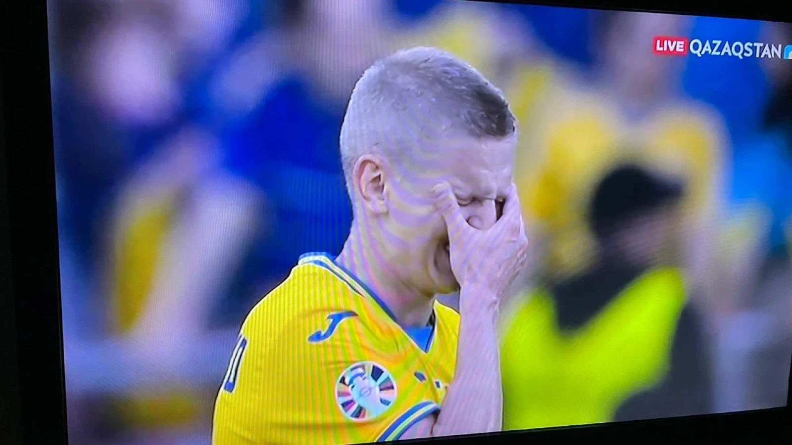 И действительно, во время вчерашнего матча украинские болельщики устроили настоящий перфоманс. При помощи искусственного интеллекта из 184 фотографий погибших защитников Украины был собран портрет молодого мужчины. По данным СМИ, это было изображение молодого бойца полка "Азов", которого во время обороны Мариуполя 6 мая 2022 года убили российские военные. Также на баннере была размещена надпись: "Мир имеет цену". Казахстанский канал транслировать эту картину не стал.