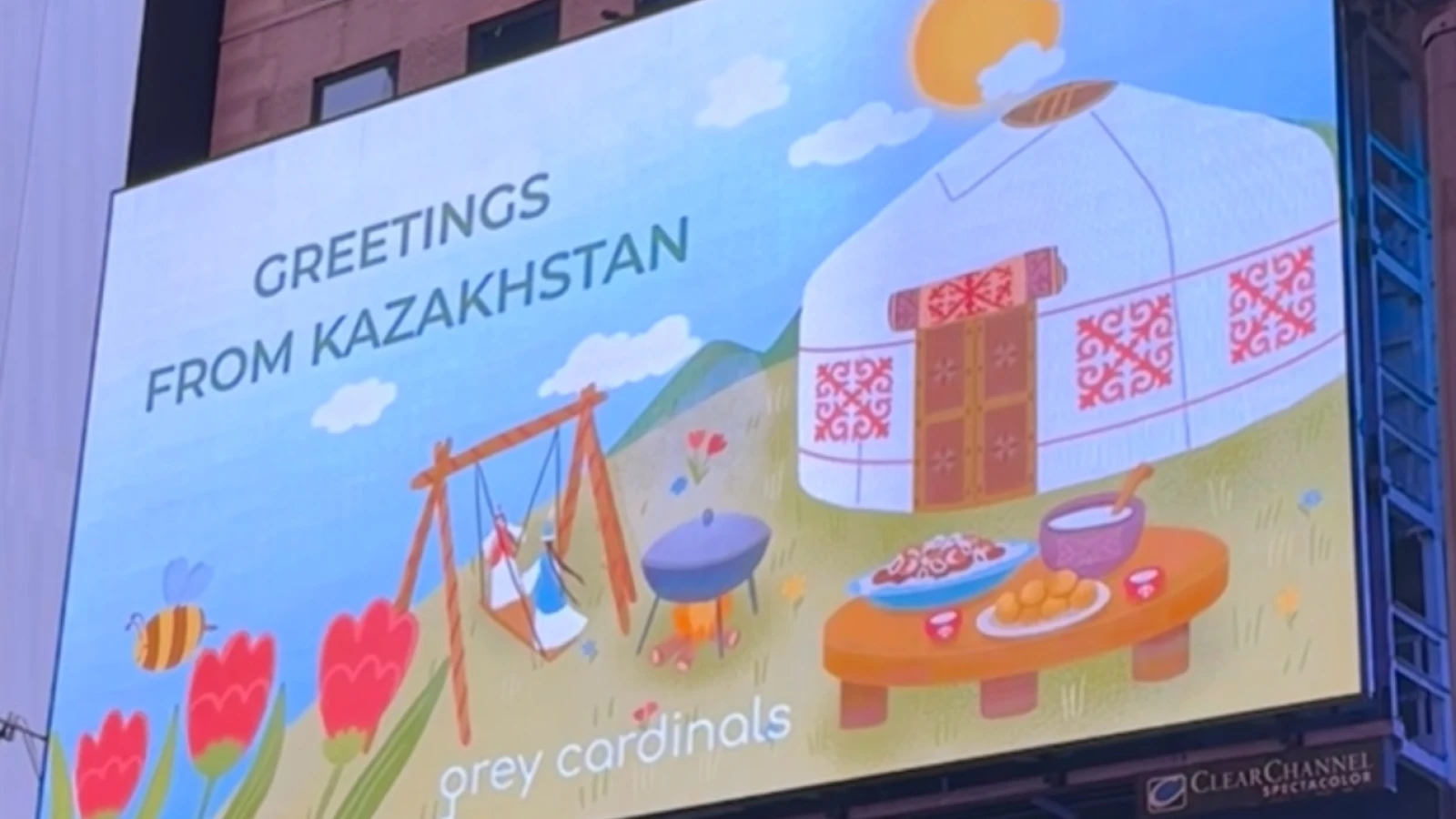 На Таймс-сквер в Нью-Йорке появилось поздравление с Наурызом. Казахстанское PR-агентство Grey Cardinals разместило на цифровом экране площади послание миру: “Happy Nauryz! Greetings from Kazakhstan!”