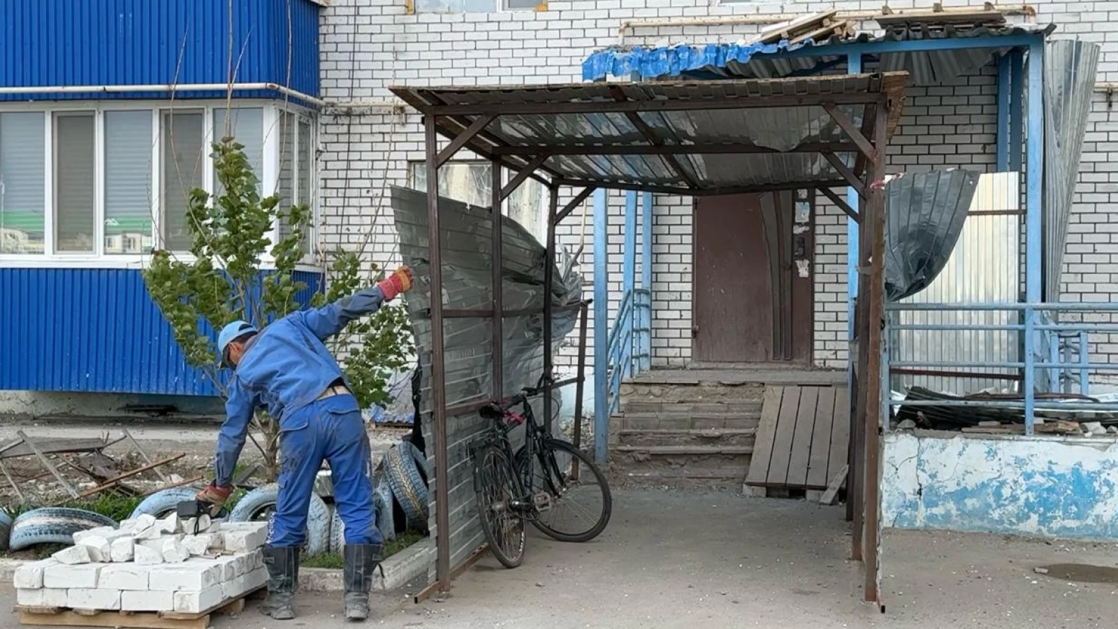 В редакцию «МГ» обратилась жительница Уральска Татьяна Маркова. Она живёт в доме, расположенном по адресу: Монкеулы, 108/5 и является владелицей одной из квартир этой девятиэтажки. Татьяна Маркова пожаловалась на ремонт фасада, который, по её мнению, делают с нарушениями. Её возмутил последний случай, который произошёл 30 апреля. С технического этажа обвалилась новая кладка облицовочного кирпича и помяла козырёк подъезда, а также коридор из профлиста, который должен обеспечивать безопасность у входа в подъезд, в случае падения кирпичей. Она отмечает, что если бы там находились люди, то трагического случая избежать не удалось бы.