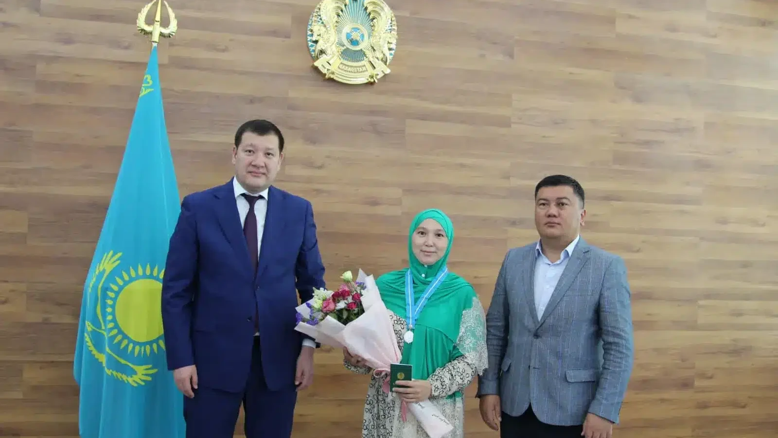 Не только в столице, но и в других городах Казахстана также отмечаются достойные примеры материнской любви и преданности. В соответствии с указом Президента №243 от 07 июня 2023 года, аким района Еркебулан Ихсанов и города Арсен Баяндыков торжественно наградили многодетную мать Д. Сисенову, вручив ей почетную награду "Күміс алқа".