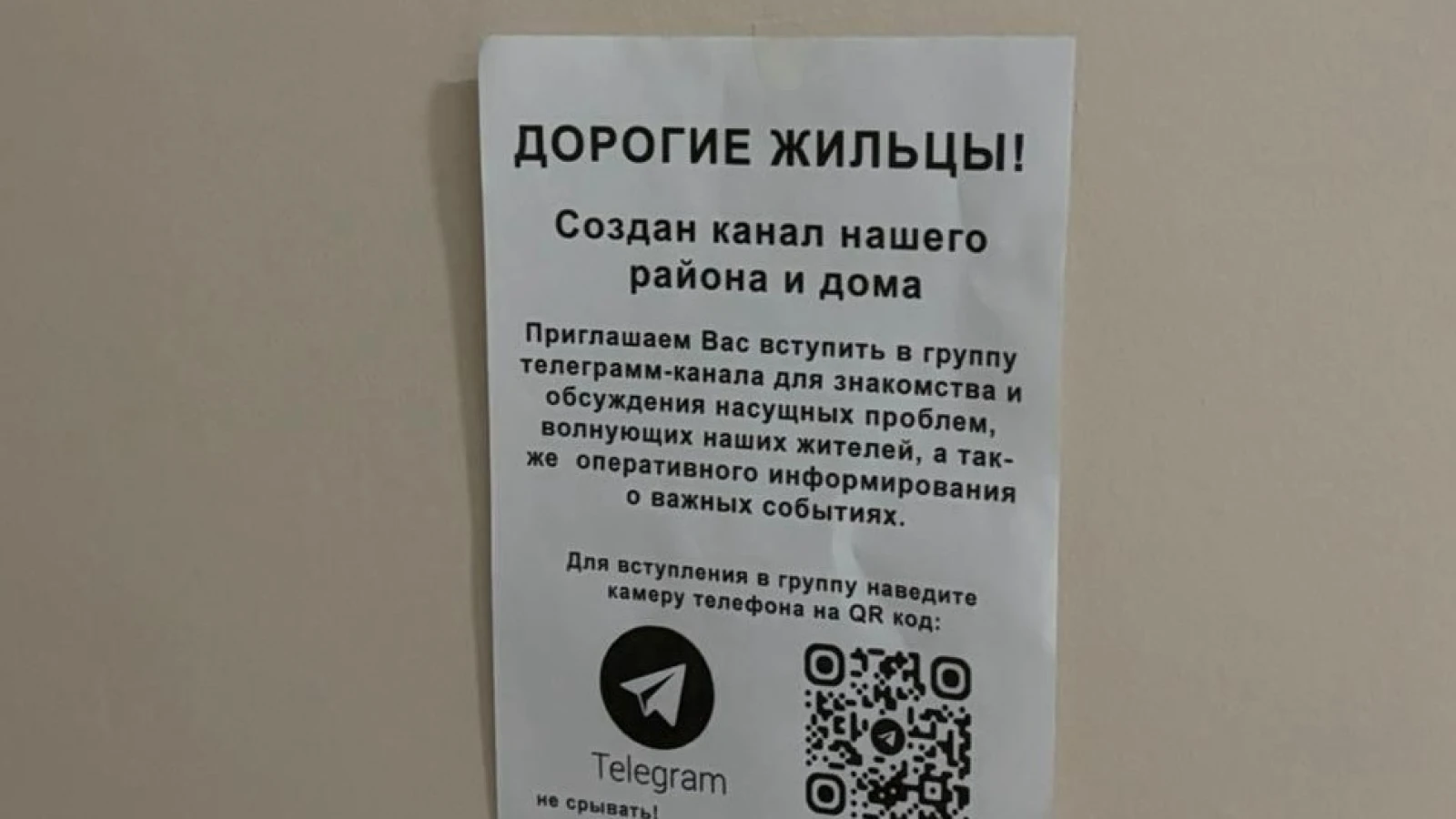 В рассылке говорится, что в подъездах многоэтажных домов появились объявления с QR-кодом, отсканировав который можно попасть в Telegram-группу для знакомства и обсуждения насущных проблем. Автор рассылки предупреждает, что сканировать код не стоит, иначе можно лишиться всех денег на счетах.