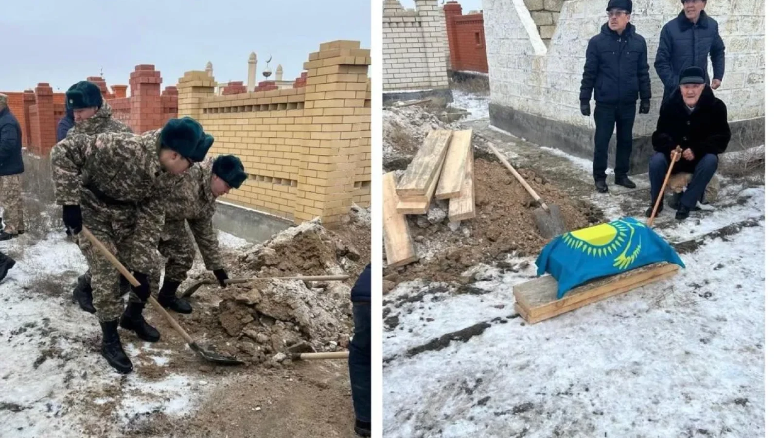 Третьего февраля на мусульманском кладбище Ногай в Атырау перезахоронили останки солдата Великой Отечественной войны Кисыма Адиева. Полторы недели назад в город доставили самолетом Минобороны Казахстана медальон, вещи и непосредственно склеп с останками. Его разыскали ещё в конце прошлого лета члены поискового отряда «Феникс» из смоленского поискового объединения «Долг».
