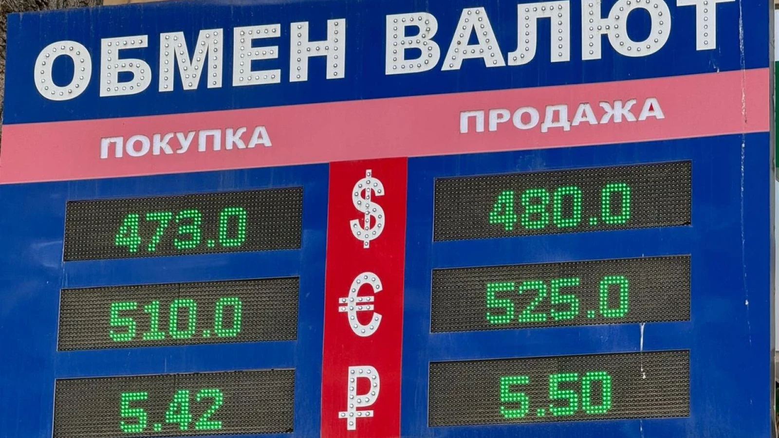 - Российский рубль: покупка — 5,42 тенге, продажа — 5,5.