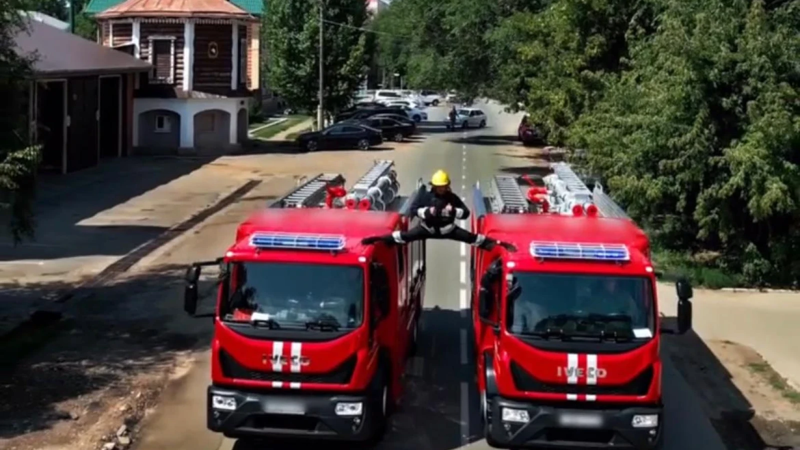 На Instagram-странице tjb_oral_bko появилось видео с трюком от спасателей. Уральский пожарный повторил трюк голливудского актера, который осенью 2013 года сел на поперечный шпагат между двумя тягачами Volvo.