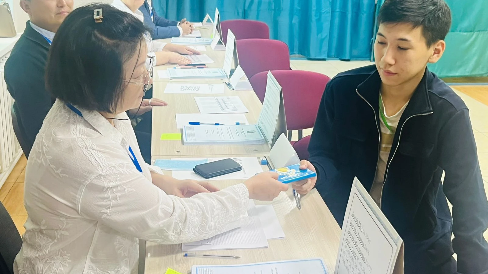 По его словам, на данном участке зарегистрировано 1469 человек, из них 217 проголосуют впервые, а у алматинца Казыбека Алиханова дата референдума совпала с днем рождения. Также на участке 279 пенсионеров и 9 людей с особыми потребностями, для которых предусмотрены специальные кабинки. Слабослышащие жители могут воспользоваться компьютером с наушниками. Для людей с нарушением зрения предусмотрены специальные бюллетени со шрифтом Брайля, дополнительное освещение и лупы. Кроме того, в онлайн-режиме дежурят сурдопереводчики.