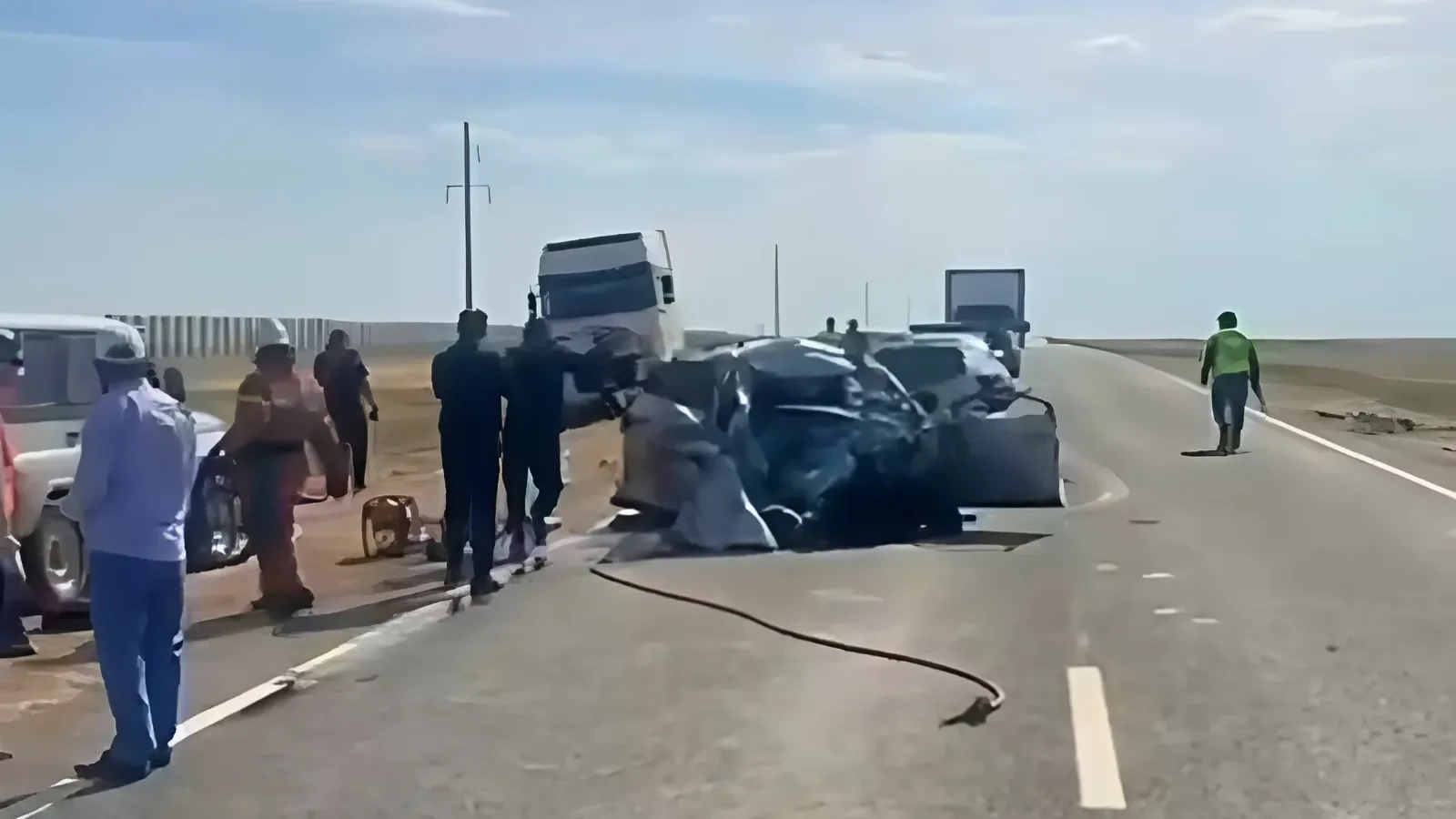 Трагедия произошла 12 июня в 14:50 на 454 километре трассы Атырау-Актобе. На автодороге столкнулись Kia Rio и грузовой транспорт DAF.