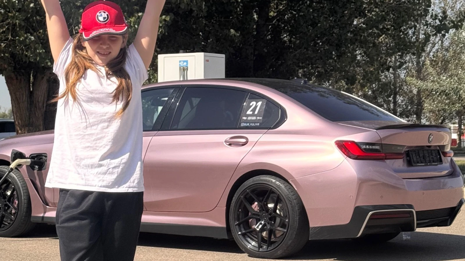 Свою электрическую BMW Юлия купила всего год назад. Единственное, что она изменила — оклеила её розовой плёнкой, поставила спортивные диски и резину.