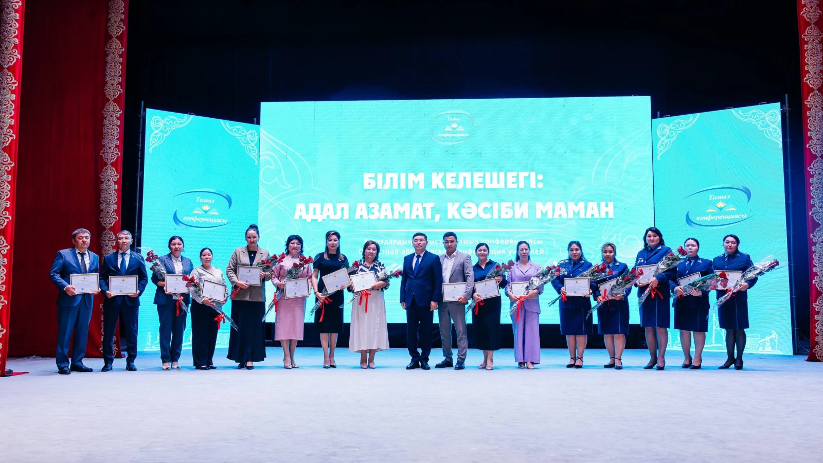 Жиында ұстаздардың еңбегі еленіп, марапаттарға ие болды. Облыс әкімі Айгүл Жұмабаева ҚР Президентінің «Құрмет» орденін, Ерболат Жұмағазиевке «Ерен еңбегі үшін» медалін табыстады. Сондай-ақ бірқатар ұстазға облыс әкімінің алғыс хаты және министрліктің төсбелгілері мен грамоталары берілді.