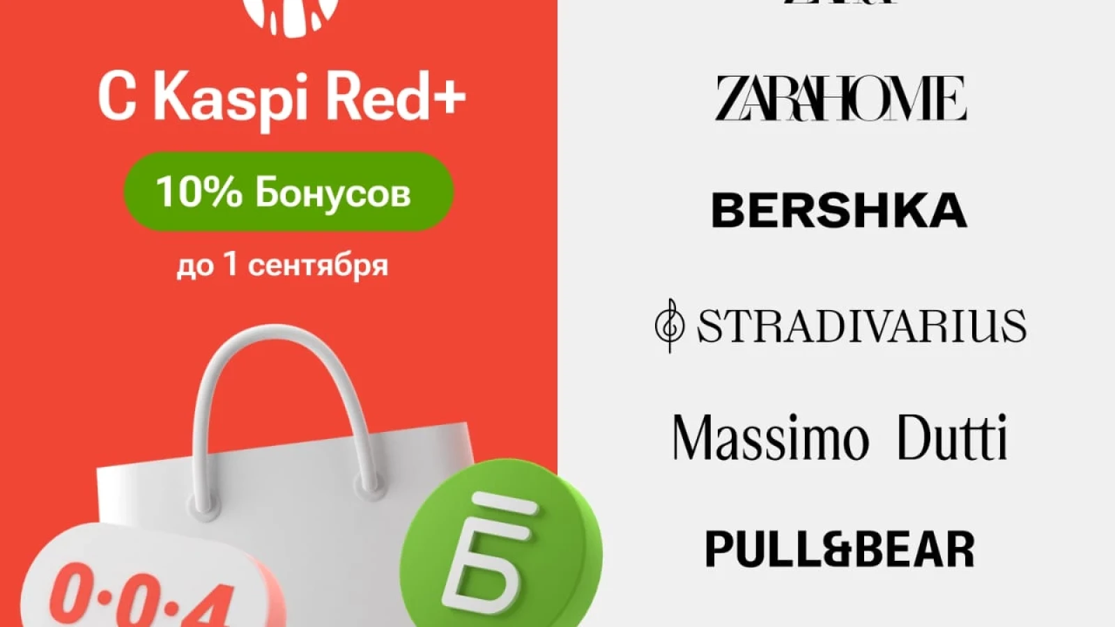Теперь покупки в Zara, Zara Home, Bershka, Stradivarius, Massimo Dutti, Pull&Bear и Oysho можно делать с Kaspi Red+. В этих магазинах до 1 сентября акция 10% Бонусов за все покупки c Kaspi Red+.