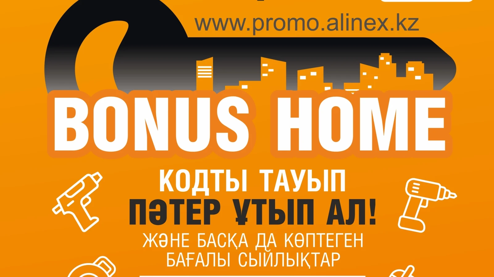 "Bonus Home" — это уникальная возможность для всех, кто выбирает AlinEX, выиграть профессиональные призы, в том числе и денежные: от 2 000 до 20 000 тенге. Строительные инструменты, униформа, сувенирная продукция, но самое главное — две квартиры в новостройках!