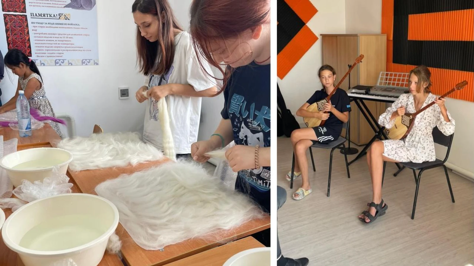В акимате Атырауской области сообщили, что в творческом центре бесплатно обучают игре на домбре, народному пению, войлочному искусству, лоскутному шитью, стрельбе из лука и қазақ күресі всех желающих в возрасте от 7 до 70 лет.